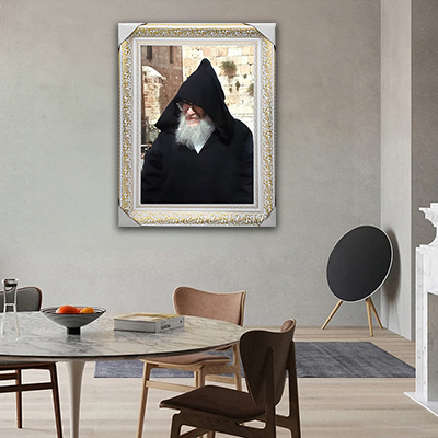 1317 – תמונה של רבי אלעזר אבוחצירא על רקע הכותל על זכוכית או קנבס