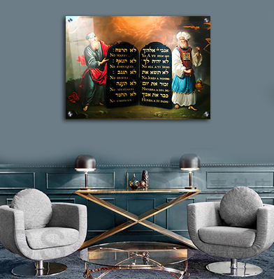 2069 – תמונת יודאיקה משה רבנו ואהרון עם לוחות הברית להדפסה על קנבס או זכוכית