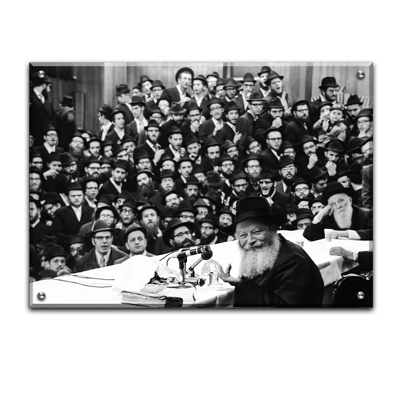 772 – תמונה של הרבי מליובאוויטש מחייך בהתוועדות שחור לבן
