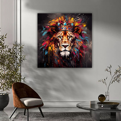 A-104 ציור גרפיטי מיוחד של אריה עם כתר על קנבס או זכוכית