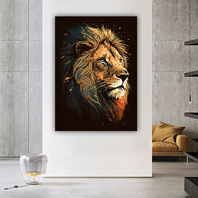 A-134 ציור של אריה לסלון או חדר שינה על קנבס או זכוכית מחוסמת
