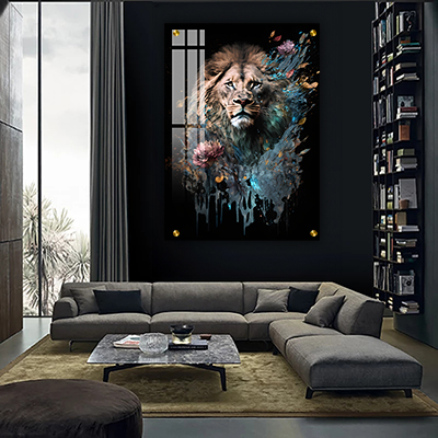 A-137 ציור של אריה לסלון או חדר שינה על קנבס או זכוכית מחוסמת
