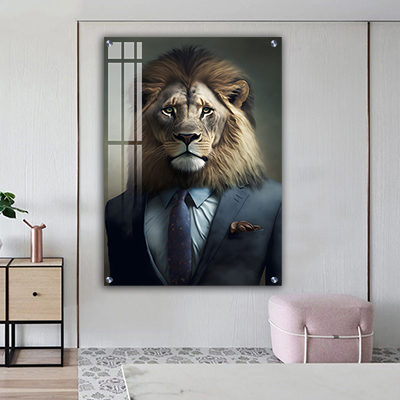 A-141 ציור של אריה אנושי לסלון או חדר שינה על קנבס או זכוכית
