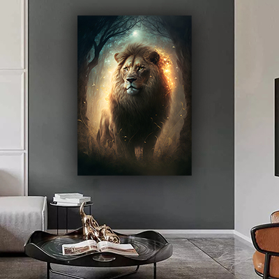 A-144 ציור של אריה לסלון או חדר שינה על קנבס או זכוכית מחוסמת