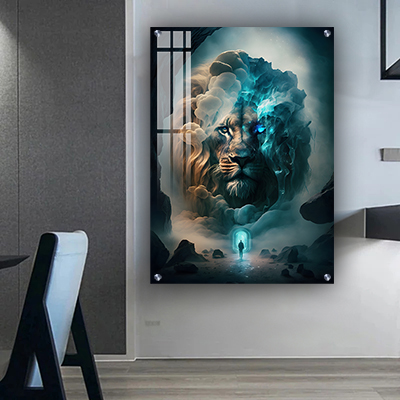 A-151 ציור של אריה לסלון או חדר שינה על קנבס או זכוכית מחוסמת