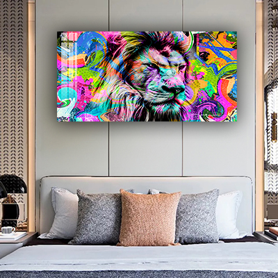 A-159 תמונה צבעונית של אריה לסלון או חדר שינה על קנבס או זכוכית
