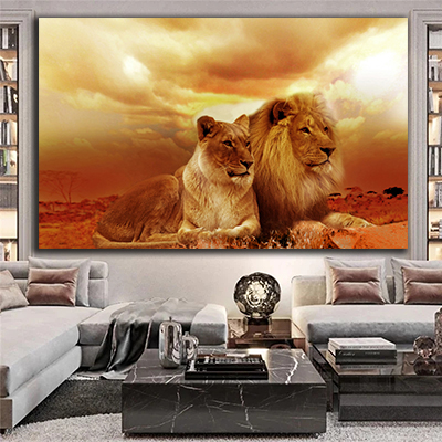 A-49 תמונה מיוחדת של אריה ולביאה בטבע להדפסה על קנבס או זכוכית