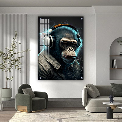 A-517 תמונת זכוכית או קנבס של קוף לסלון או חדר שינה