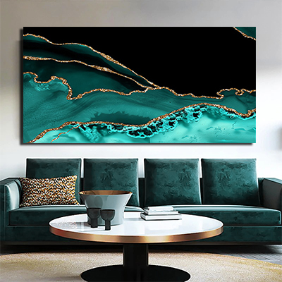 AB-31 תמונת אבסטרקט עם גווני טורקיז ונגיעות זהב מיוחדות