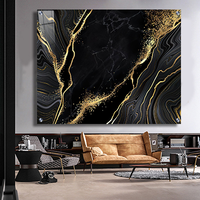 AB-34 תמונת אבסטרקט יוקרתית ומודרנית עם אפקט שיש וזהב על זכוכית או קנבס