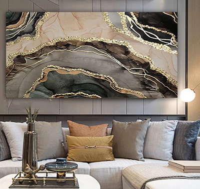 AB-53 תמונת אבסטרקט מיוחדת של רקע שיש ופסים בזהב להדפסה על קנבס או זכוכית