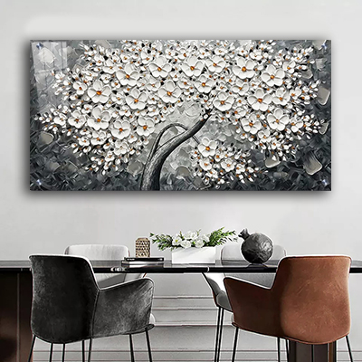 FL-17 תמונת זכוכית או קנבס של עץ עם פרחים לבנים