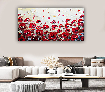 FL-19 תמונת זכוכית או קנבס של עץ עם פרחים אדומים