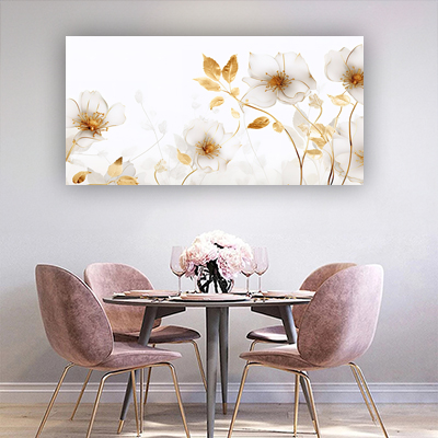 FL-28 תמונה של פרחים בלבן וזהב להדפסה על קנבס או זכוכית
