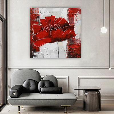 FL-37 ציור של פרח אדום על קנבס או זכוכית מחוסמת