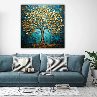 FL-46 ציור של עץ עם עלי זהב על קנבס או זכוכית מחוסמת