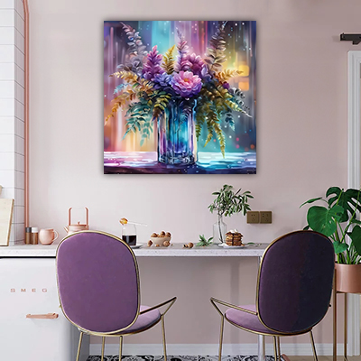 FL-56 ציור צבעוני פרחים על קנבס או זכוכית מחוסמת