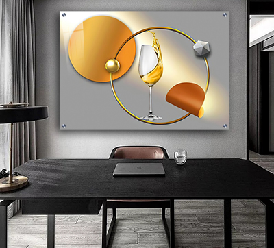 K-11 תמונת אבסטרקט מוארת בשילוב כוס יין להדפסה על קנבס או זכוכית