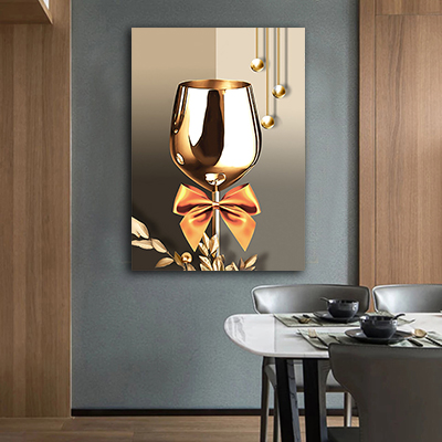 K-19 תמונה של כוס יין מוזהבת למטבח או פינת אוכל על קנבס או זכוכית