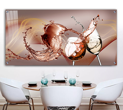 K-2 תמונת מודרנית של כוסות יין למטבח או פינת אוכל על קנבס או זכוכית מחוסמת