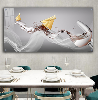 K-8 תמונת אבסטרקט מודרנית של כוסות יין מתמזגות למטבח או פינת אוכל על קנבס או זכוכית