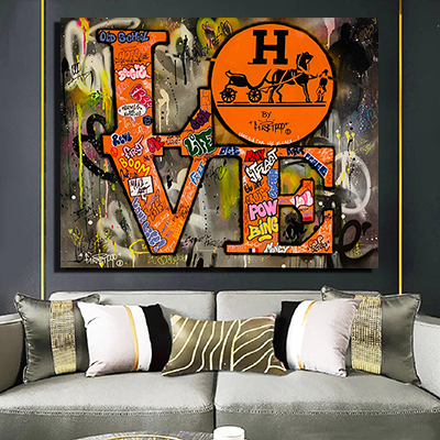 LF-29 תמונת מותג צבעונית ומודרנית של הרמס בשילוב גרפיטי וכיתוב LOVE