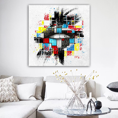 LF-86 תמונת גרפיטי מעוצבת של שפתיים על זכוכית או קנבס