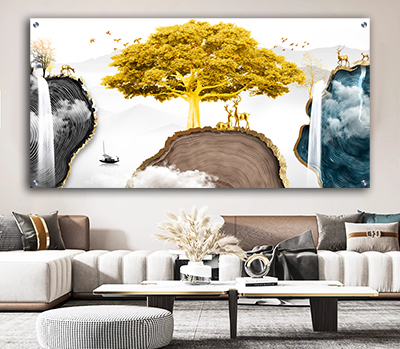 N-51 תמונת אבסטרקט מודרנית של נוף מוזהב על זכוכית או קנבס