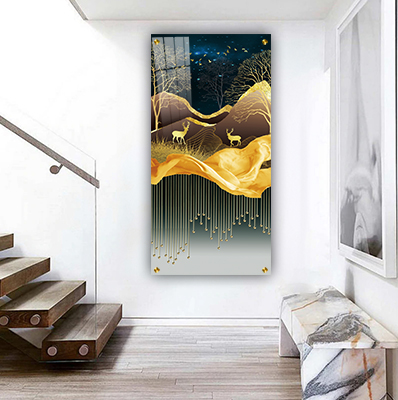 N-53 ציור מיוחד של נוף אבסטרקטי עם איילים ועצים בזהב