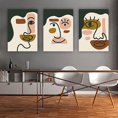 P-136 סט תמונות אבסטרקט דמויות 3 חלקים על קנבס או זכוכית מחוסמת