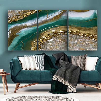 P-61 סט מחולק שלישיית תמונות אבסטרקט סגנון שיש בגווני טורקיז וזהב